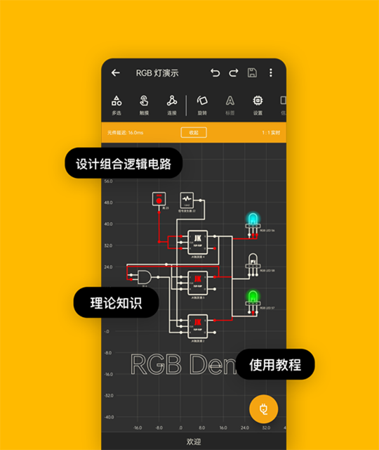 电工电路逻辑模拟器为你提供设计自己数字电路的工具,帮您学习电子和电气工程的基础知识。